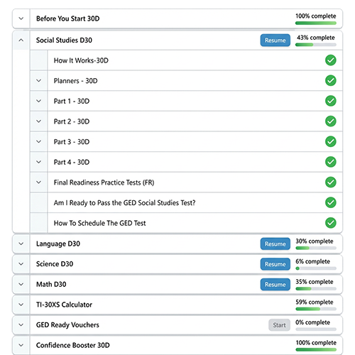 Onsego30 moves quickly. You can finish your GED prep in 30 days.